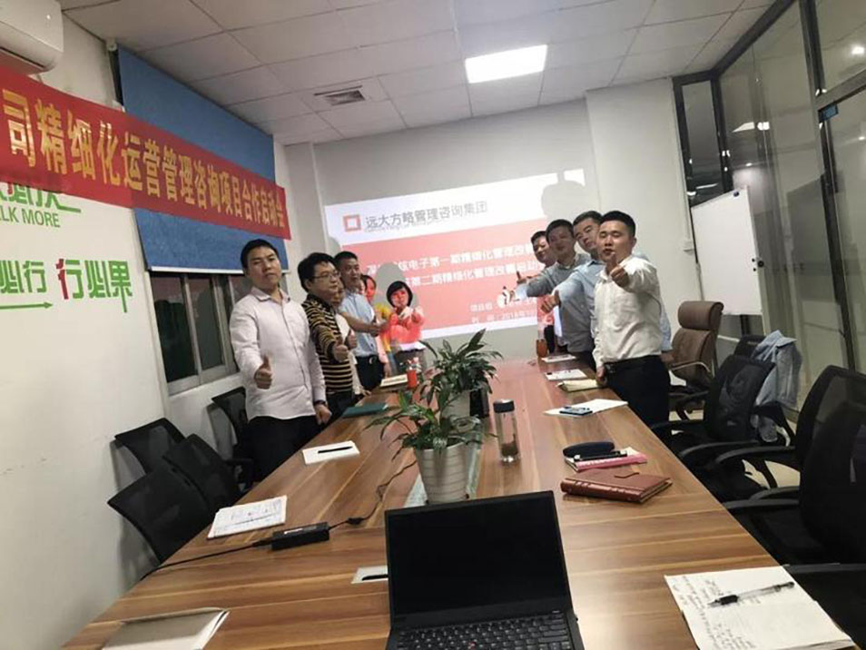2018年10月底,菲炫科技與遠(yuǎn)大方略續(xù)簽了第二期管理咨詢《精細(xì)化運(yùn)營(yíng)》項(xiàng)目,第二期改善主要圍繞公司產(chǎn)能提升、研發(fā)項(xiàng)目管理、工程與品質(zhì)規(guī)范、線材組流線化生產(chǎn)、5S及現(xiàn)場(chǎng)管理、PMC作業(yè)標(biāo)準(zhǔn)化等展開改善。通過(guò)改善提高公司的人均產(chǎn)值、降低損耗、提高客戶滿意度、培養(yǎng)和提升內(nèi)部管理團(tuán)隊(duì)。
