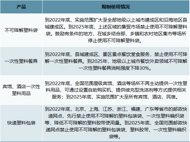 國家發展改革委、生態環境部印發《關于進一步加強塑料污染治理的意見》,明確提出了進一步加強塑料污染治理的“時間表”:2020年率先在部分地區、領域禁限生產、銷售和使用部分塑料制品。2022年一次性塑料制品消費量明顯減少,替代產品得到推廣。2025年塑料制品全環節管理制度建立,塑料污染得到有效控制。做好塑料污染治理,全國各省在展開協同作戰,陸續推出的限塑禁塑時表。