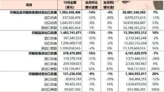 2022年1-10月國(guó)內(nèi)印刷品及印刷裝備器材進(jìn)出口總值數(shù)據(jù)