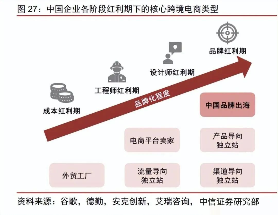 早期,憑借國內的勞動力優(yōu)勢,中國制造的高性價比產品快速打開海外市場,但也帶 來了消費者價格敏感、用戶粘性及心智較差等問題。經過二十余年發(fā)展,隨著我國跨境電商模式的逐漸成熟、產業(yè)鏈布局的逐漸深入,以及行業(yè)競爭的日益激烈,國內跨境電商賣家正在實現(xiàn)從中國制造到中國品牌的升級,以提升消費者心智并強化議價能力。