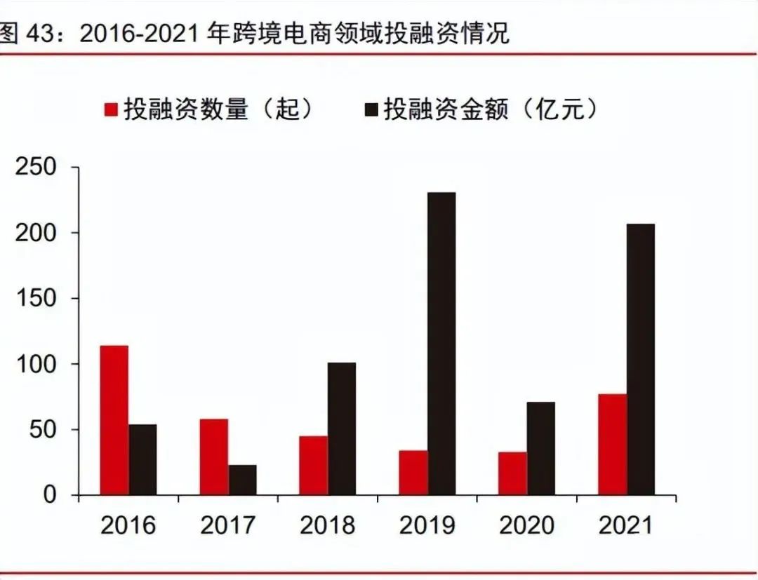 服務生態(tài)完備,全鏈路賦能跨境賣家。隨著跨境電商行業(yè)整體成熟度和專業(yè)度的提升, 以及行業(yè)競爭的加劇,對賣家的綜合運營能力提出了更高的要求,跨境支付、代運營、營銷推廣等跨境電商服務商應運而生。根據艾瑞咨詢,2021 年跨境電商領域投融資總金額 達 207 億元,其中服務商領域融資事件/規(guī)模占比分別為 65%/34.5%。跨境電商服務商生態(tài)的繁榮,有助于增強跨境賣家面向海外市場的競爭力。