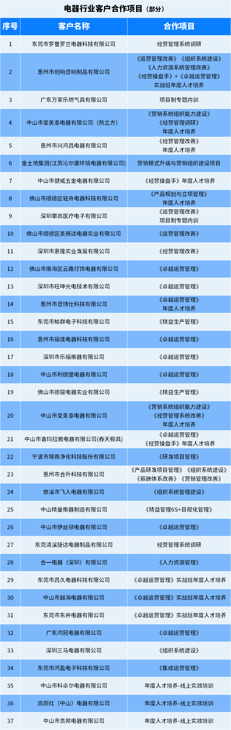 優(yōu)益電器與遠(yuǎn)大方略合作開(kāi)啟《人力資源管理系統(tǒng)》咨詢(xún)項(xiàng)目,持續(xù)優(yōu)化組織架構(gòu),完善了薪酬績(jī)效體系,有效提升公司各部門(mén)工作效率和目標(biāo)達(dá)成率。派送8人參加《卓越運(yùn)營(yíng)管理》實(shí)戰(zhàn)班培訓(xùn),圍繞財(cái)務(wù)管理、供應(yīng)鏈、精益、人力資源、研發(fā)、營(yíng)銷(xiāo)等模塊,培養(yǎng)了一支行動(dòng)力強(qiáng)、技能優(yōu)秀的中層管理干部,持續(xù)助推公司高速高質(zhì)量發(fā)展。