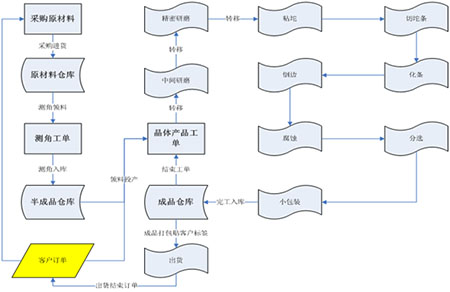 測角工藝對物料角度的分選,分選后對不符合角度的物料需要回倉管理;原材料需要有特征碼(如:角度參數(shù))及特征分類庫存管理。