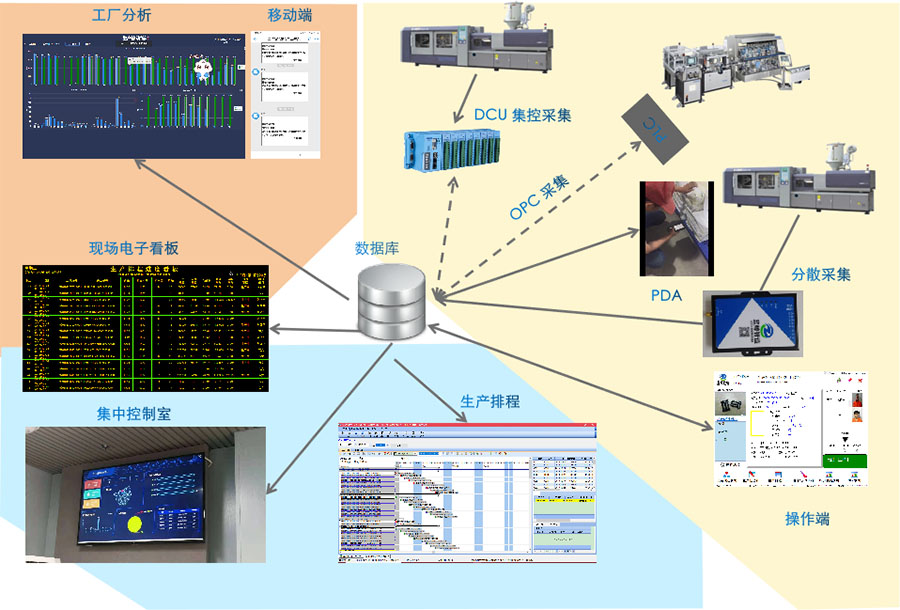 遠大方略科技MES系統通過部署DCT、DCN等實時數據采集終端、PC采集、數據文件手動導入等方式,實時采集生產現場的生產進度、生產狀態、備料上料、物料、、設備測試與維修、物料質檢抽檢、重工等各種生產數據,并及時進行整合分析、匯報。