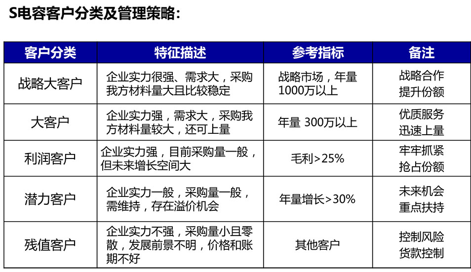 2、明確了電容業務戰略重點,包括重點市場、重點產品、重點客戶,進行了電容業務戰略布局,幫助企業建立了科學的大客戶銷售服務模式。