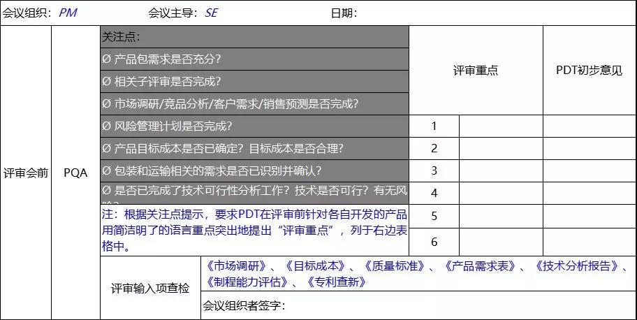 評審過程需要有人負(fù)責(zé),一般來講系統(tǒng)工程師是技術(shù)指導(dǎo)者,PQA是過程主持人, PDT核心組成員反映部門問題,代表本領(lǐng)域提出專業(yè)意見,并代表功能部門承擔(dān)責(zé)任,項目領(lǐng)導(dǎo)以業(yè)務(wù)需要為出發(fā)點對技術(shù)問題做決策。