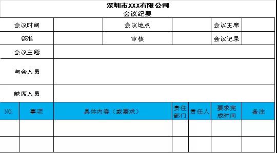 ▲附示例圖:企業(yè)常用的會議紀要格式模版
