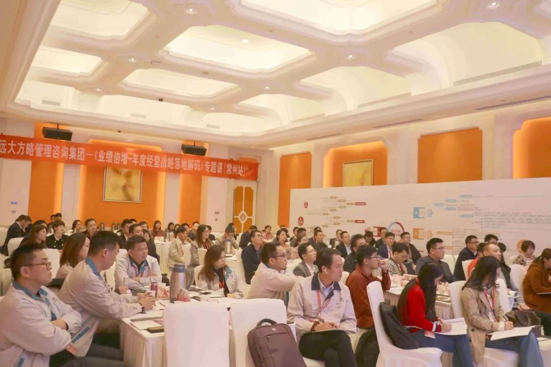 2019年11月15日—16日,遠(yuǎn)大方略《業(yè)績(jī)倍增---年度經(jīng)營(yíng)戰(zhàn)略落地解碼》全國(guó)巡講課第二站,在常州白金漢爵大酒店開(kāi)講。現(xiàn)場(chǎng)齊聚長(zhǎng)三角100+位企業(yè)董事長(zhǎng)、總經(jīng)理、各事業(yè)部副總等參與本次課程學(xué)習(xí)探討。