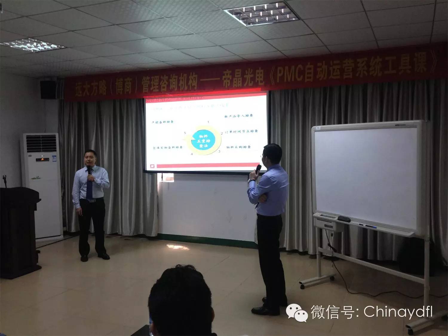 雷志軍老師與劉再強老師在詳細講解物料五重排查法以及物料齊套管理困難后果