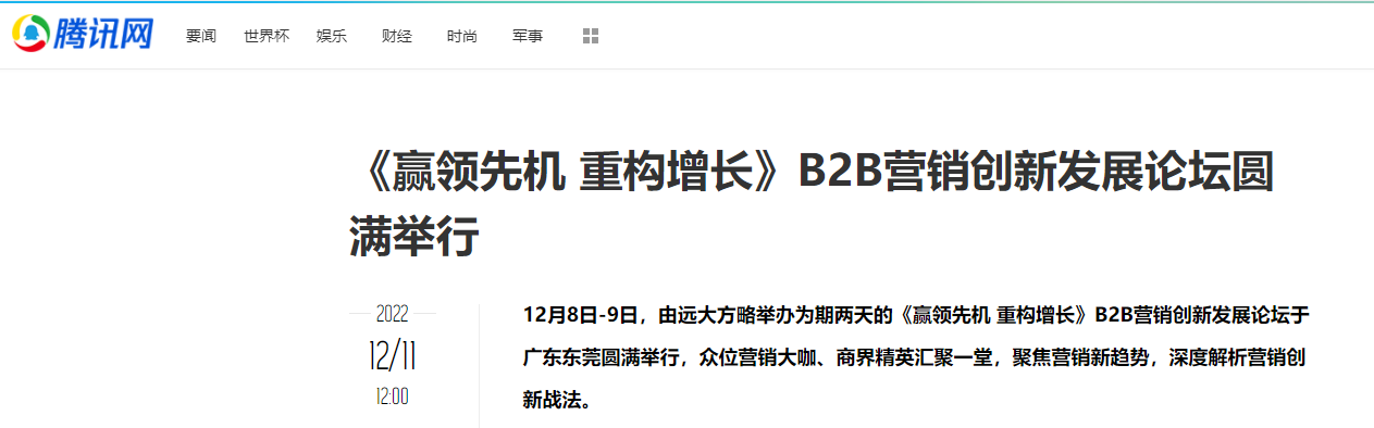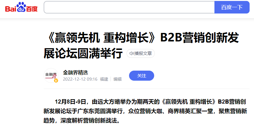 12月8日-9日,由遠大方略舉辦為期兩天的《贏領先機 重構增長》B2B營銷創新發展論壇于廣東東莞圓滿舉行,眾位營銷大咖、商界精英匯聚一堂,聚焦營銷新趨勢,深度解析營銷創新戰法。