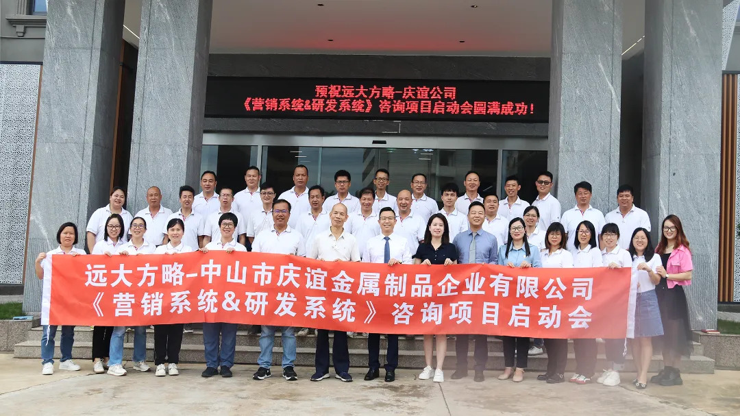 營銷和研發相輔相成,共同推動企業的發展。近日,中山市慶誼金屬制品企業有限公司(以下簡稱“慶誼金屬制品”)攜手遠大方略啟動《營銷系統&研發系統》咨詢項目,提高產品的市場競爭力,加快產品上市時間,更好地滿足客戶需求,提升客戶滿意度,助力企業持續增長。