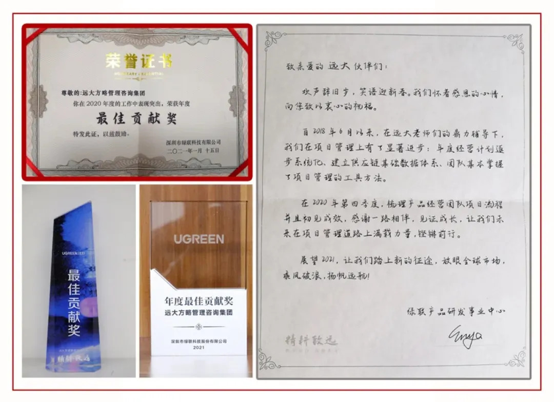 綠聯科技始終秉承“為用戶創造價值”的使命,以技術創新為驅動,堅持“品質至上”的原則,贏得市場廣泛認可,同時推動消費電子產業的持續進步與發展。這也與遠大方略的發展理念不謀而合,遠大方略以“為客戶創造價值為第一原則”,秉持“價值、實效、創新、長期主義”的價值觀,堅持“用伴隨式服務,打造細分領域冠軍”的使命,為企業創價值,與企業共成長。