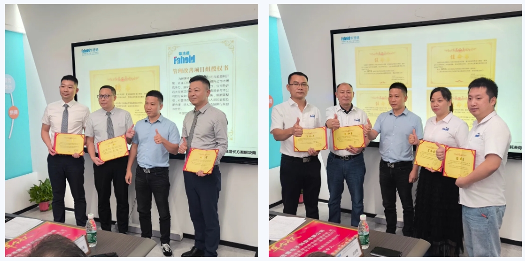 會上,黃總還為項目組頒發聘書和授權書,同時為項目改善小組頒發任命書,簽發軍令狀,明確目標,落實責任。最后,參會全體人員進行宣誓,堅定變革決心,全力推動改善,助力企業高質量發展。