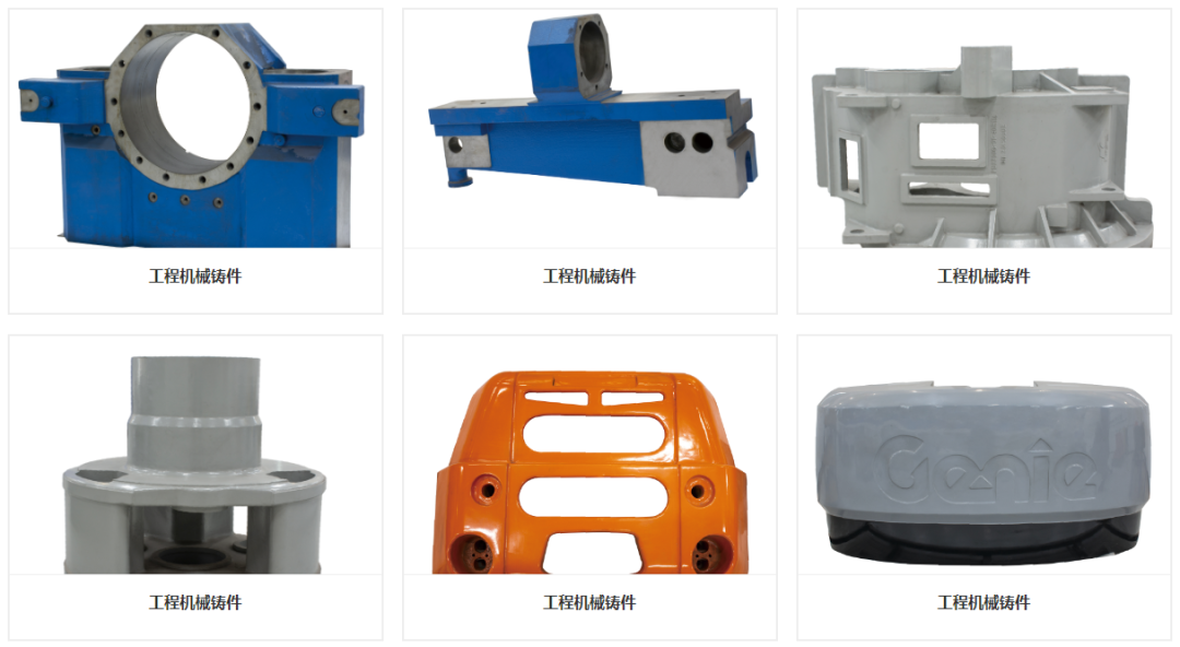可生產加工各種牌號的灰鐵、球鐵鑄件,主要產品有托架、半軸殼體、飛輪、輪轂、橋殼、轉向節、滾筒、軸承座、立柱、大臂、轉座、箱體、端蓋、平衡重等。產品遠銷歐美國家,深受客戶高度好評,是美國卡特彼勒、愛科、凱斯紐荷蘭、約翰迪爾、特雷克斯,意大利道依茨法爾,加拿大斯凱杰科,瑞士立達紡織,德國利勃海爾、寶峨等世界頂級整機公司的戰略合作伙伴。國內主要銷往徐工集團、埃斯頓機器人、中國一拖等知名企業。
