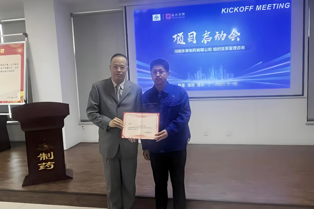 近日,河南東泰制藥有限公司(以下簡稱“河南東泰制藥”)攜手遠大方略啟動《組織優化管理變革》咨詢項目,構建更加科學合理的組織架構,提升跨部門協作能力,完善薪酬與績效體系,充分激發員工的工作積極性與創造力,全面優化運營流程,降低內耗、提升效率,構建能夠支撐企業持續發展的組織能力,為企業的長遠發展奠定堅實基礎。