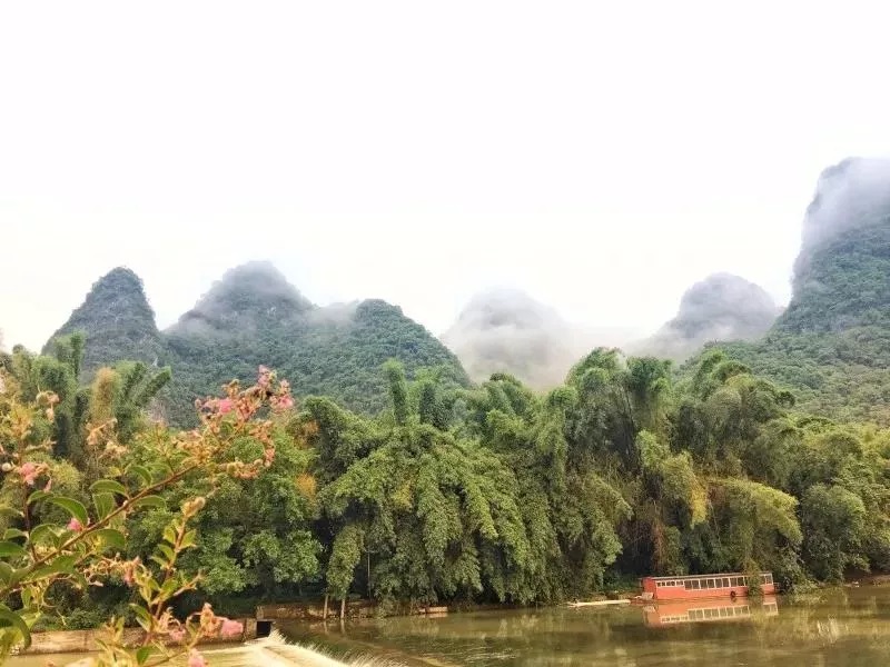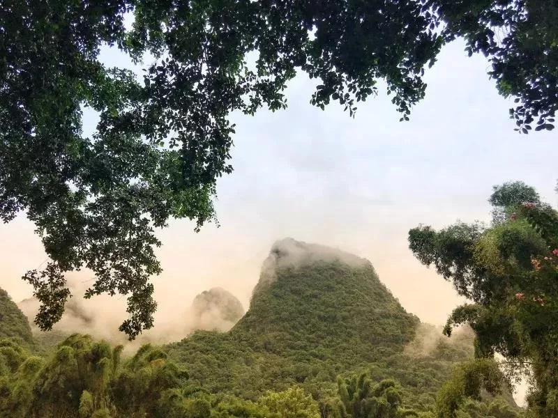 7:40AM興坪古鎮(zhèn)的美景,一座座山與山間環(huán)繞的霧氣朦朦朧朧的詩意畫境是桂林的特色。