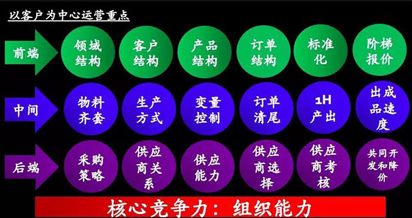 3、運(yùn)營重點(diǎn):企業(yè)的商業(yè)模式不一樣,對企業(yè)內(nèi)部運(yùn)營的要求和重點(diǎn)也不一樣,例如某中小型企業(yè)是以客戶為中心的,該企業(yè)的運(yùn)營重點(diǎn)總結(jié)如下圖所示(企業(yè)階段、規(guī)模、行業(yè)等存在差異,運(yùn)營重點(diǎn)也會有差異):