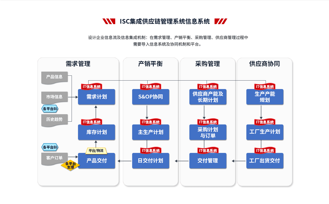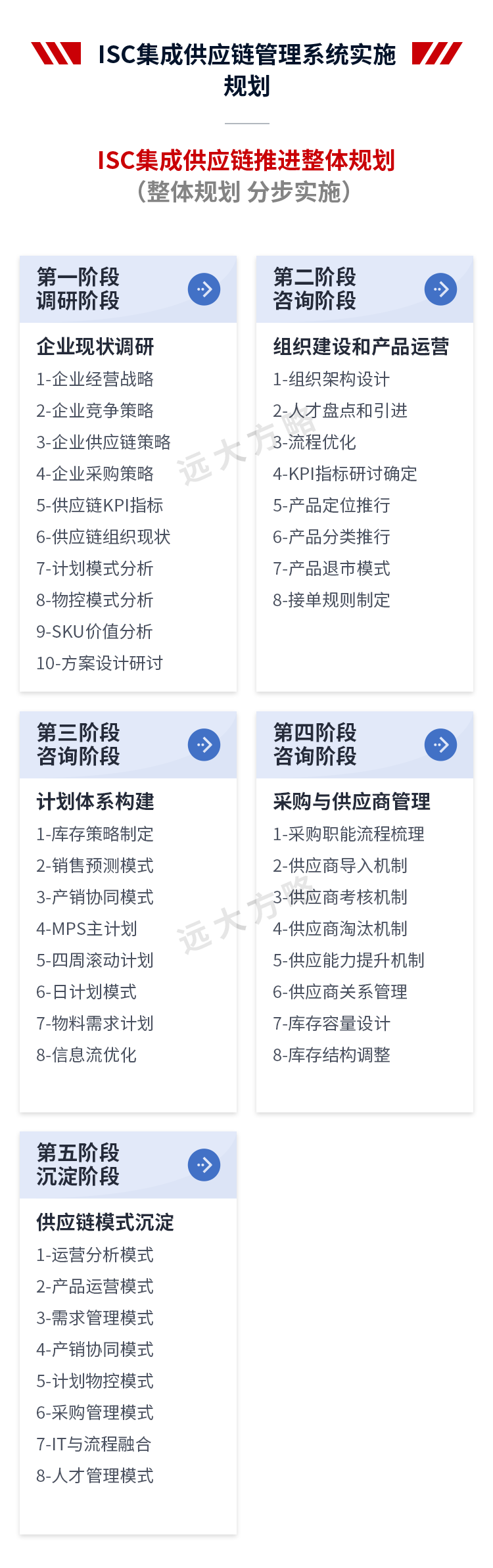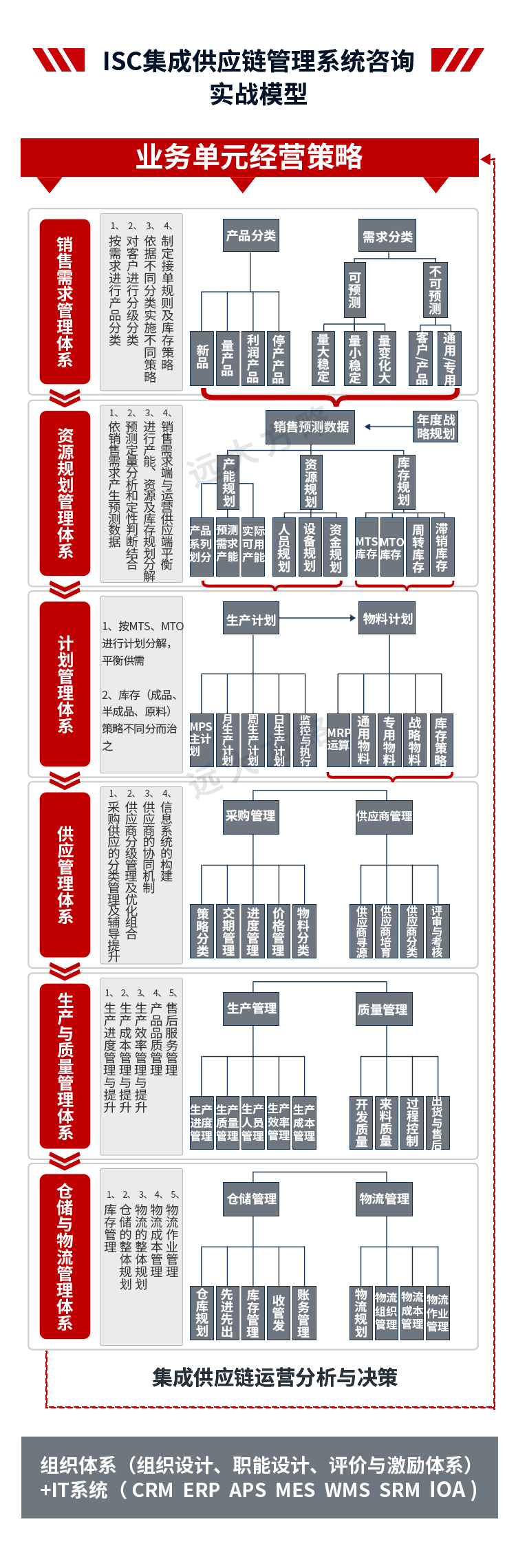 2、輔導模塊:推行ISC集成供應鏈管理,主要圍繞產品運營管理、接單規則和庫存管理、銷售預測管理、S&OP管理、公司計劃模式優化、物料管理體系等