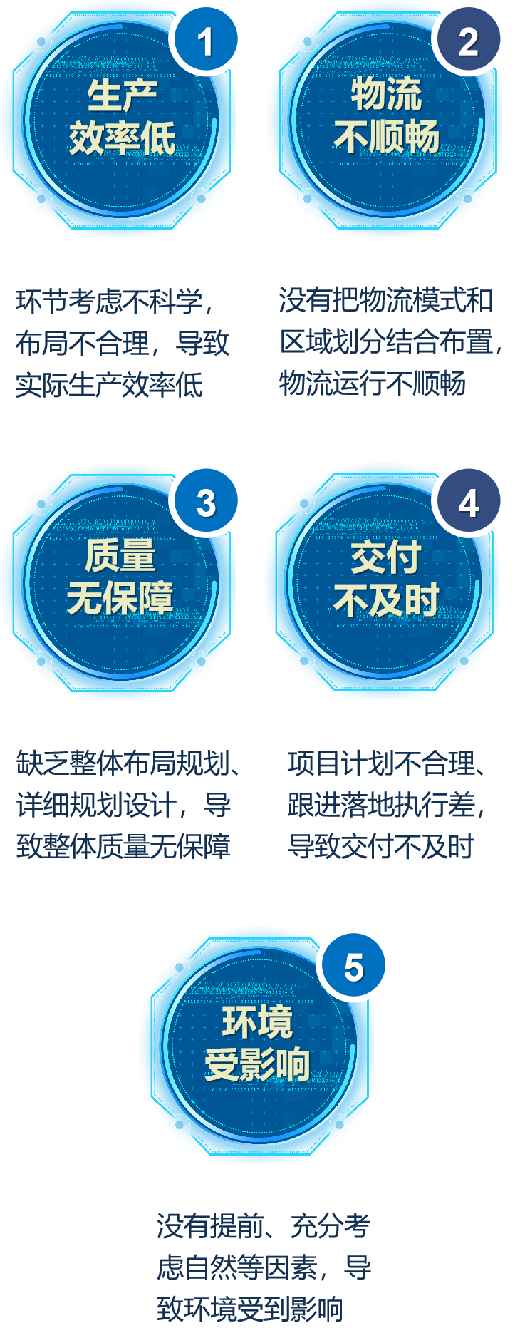 ①自制件全部整合規劃,消除園區間長距離搬運;②基本實現園區人車分流;③物流自動化。