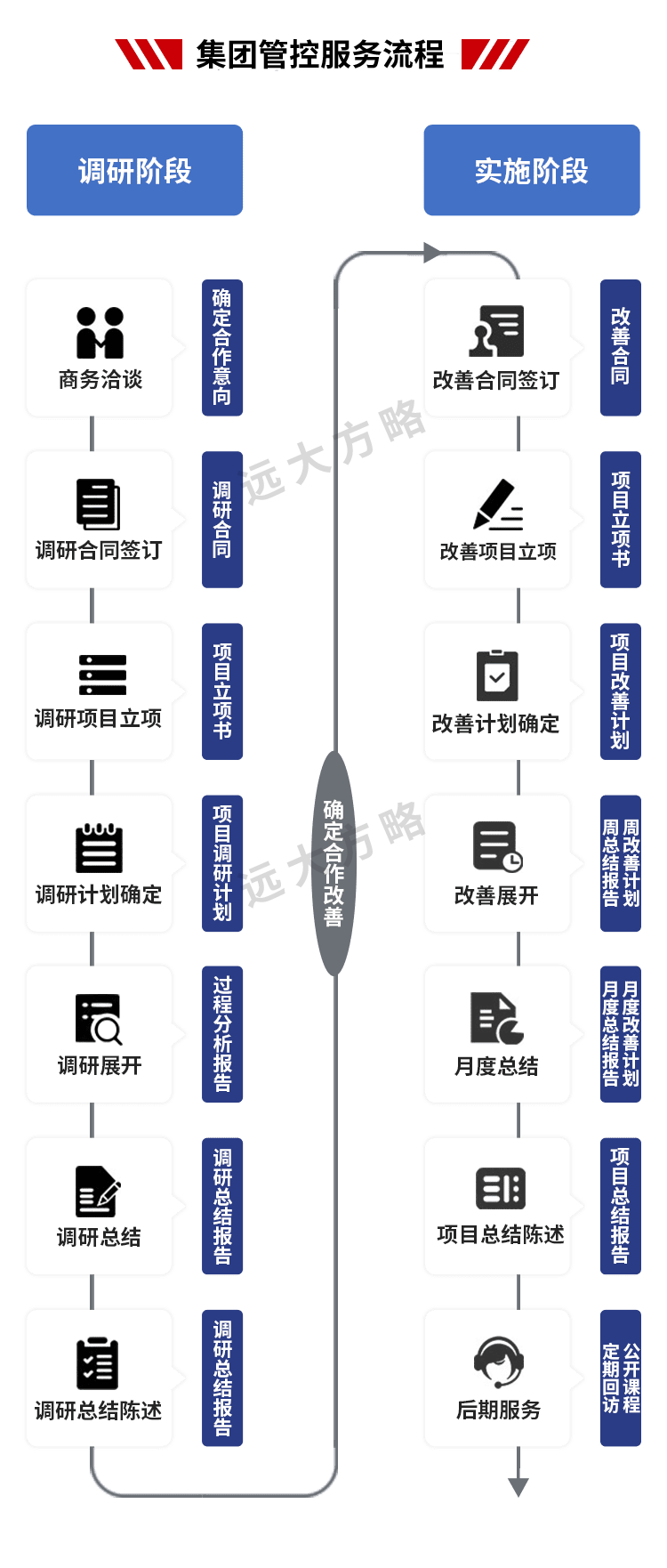 遠(yuǎn)大方略始終遵循不了解不理解企業(yè)的前提下絕不輕易下結(jié)論,正式制定改善方案前必須深入到業(yè)務(wù)一線了解和理解企業(yè)的運(yùn)營情況。